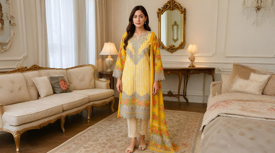 Bring brightness and freshness together with Sunny Aura from Gul Ahmed Digital Printed Lawn...