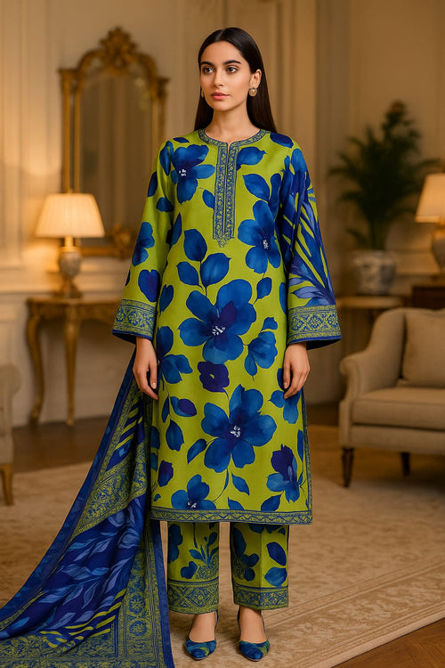 Blue Aura – 3PC Unstitched Lawn & Khaddar Suit (Regalia Collection)
